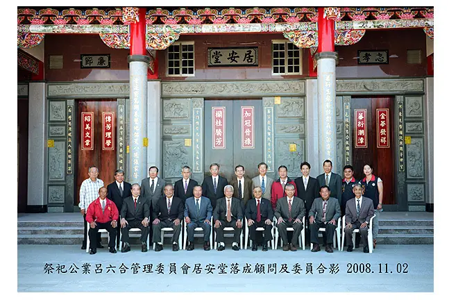 源自清朝道光年間(1835),十二世祖衍且公建立居安堂。後由六房族人共同組成祭祀公業呂六合,百年來守護宗族文化,凝聚海內外呂氏宗親。